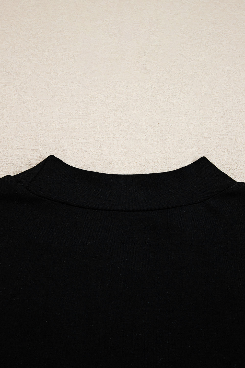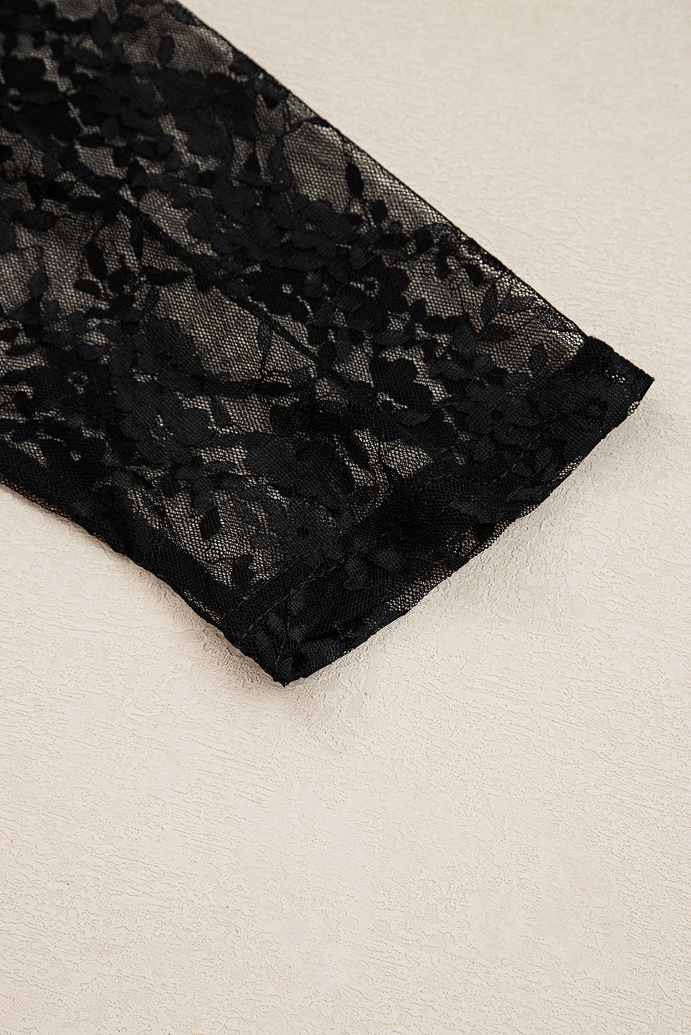 Black Plus Size Lace Patchwork Asymmetric Cutout Sheer Long Sleeve Top