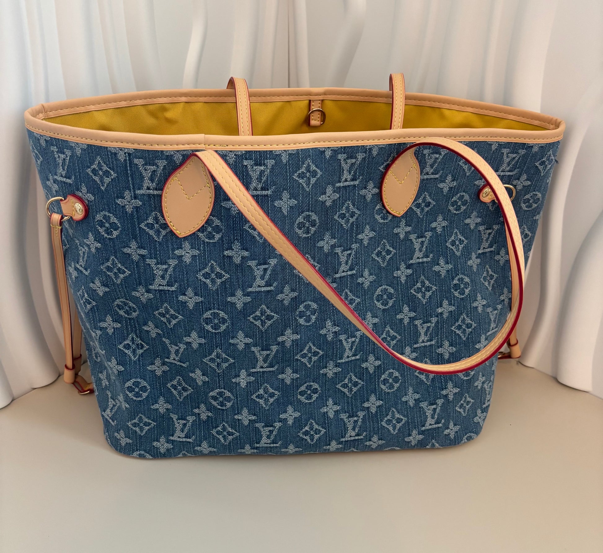 Chic Denim Monogram Tote + Wristlet โ Inspired ๐๐