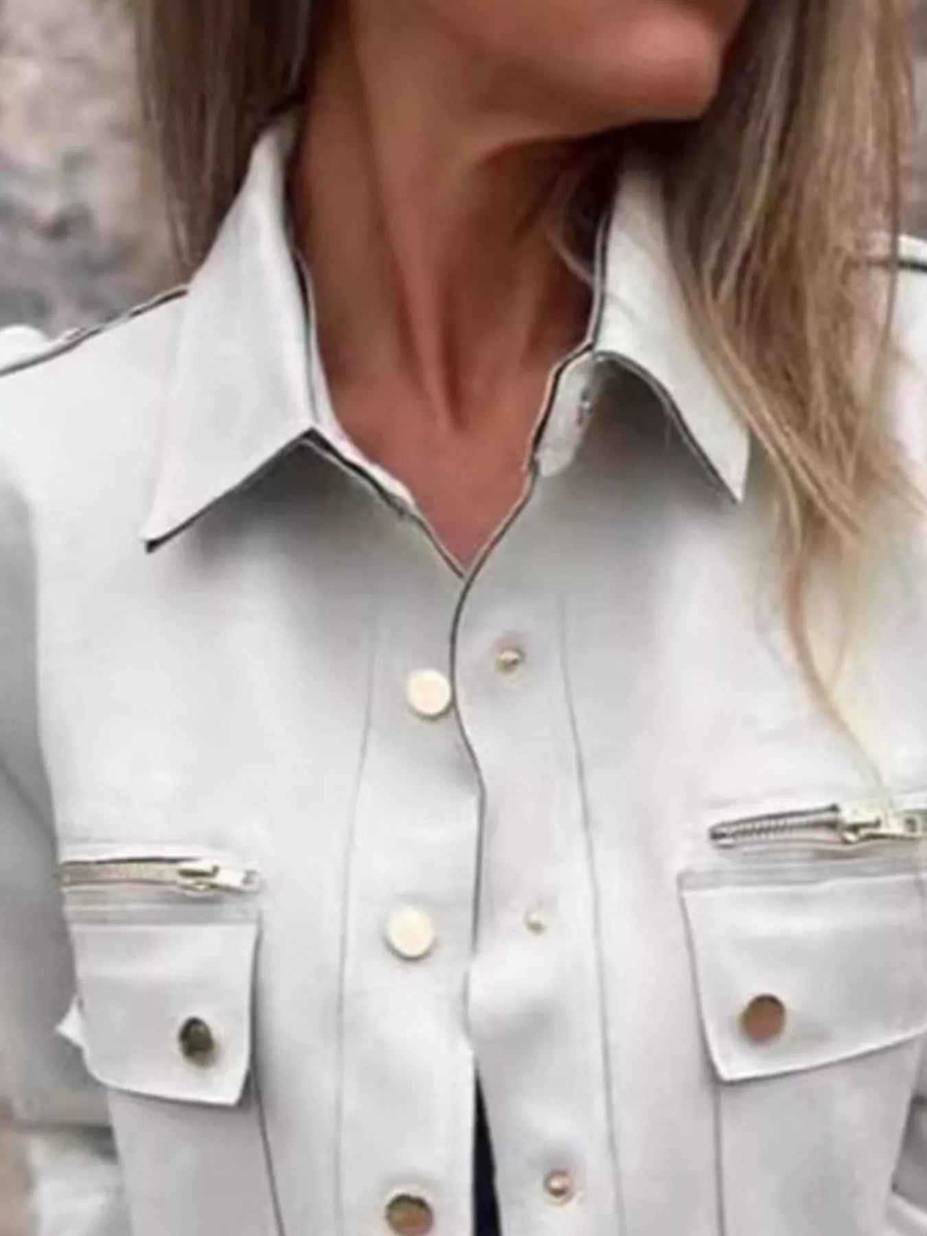 Full Size Snap Down Long Sleeve Jacket Plus Size