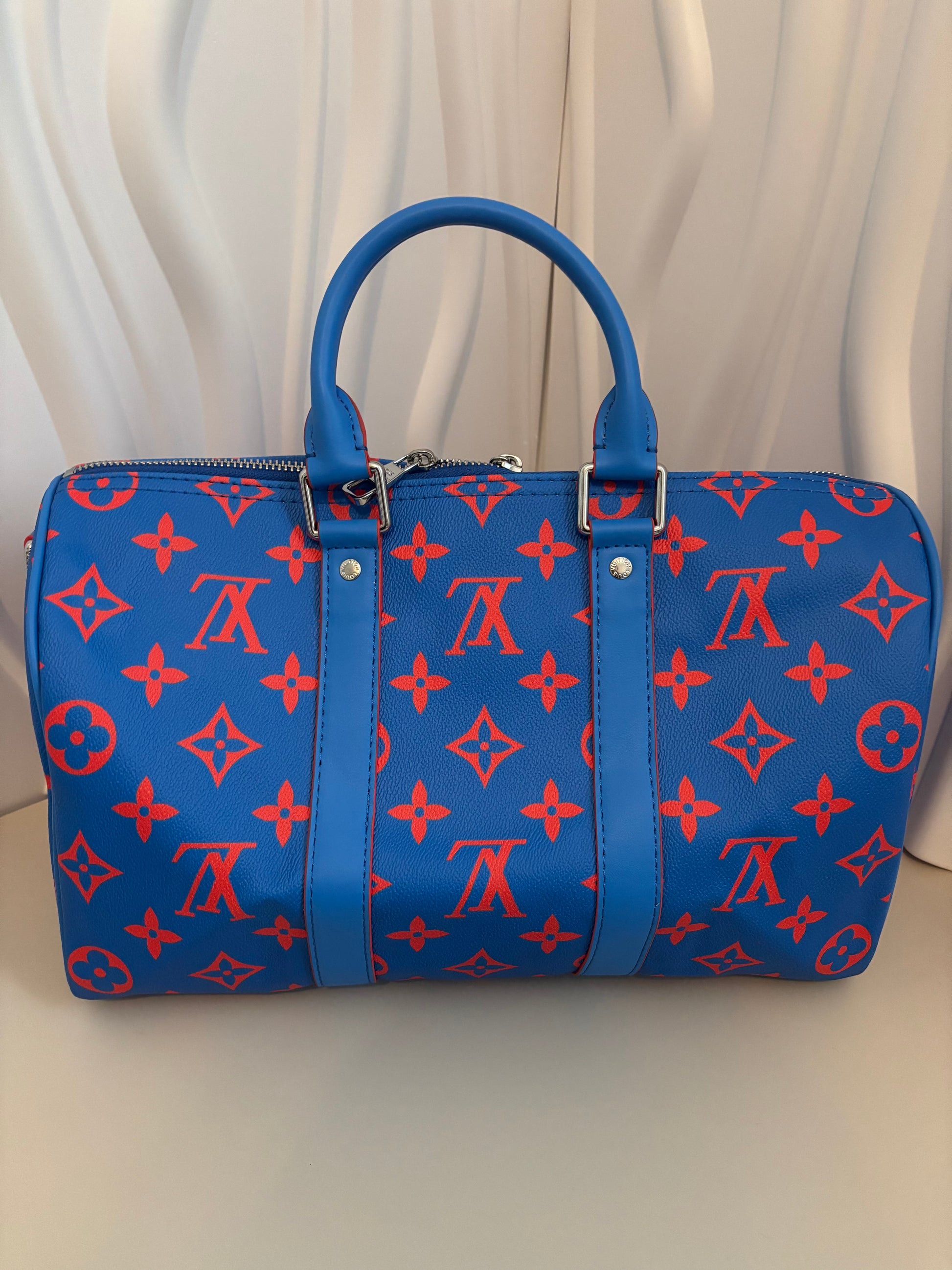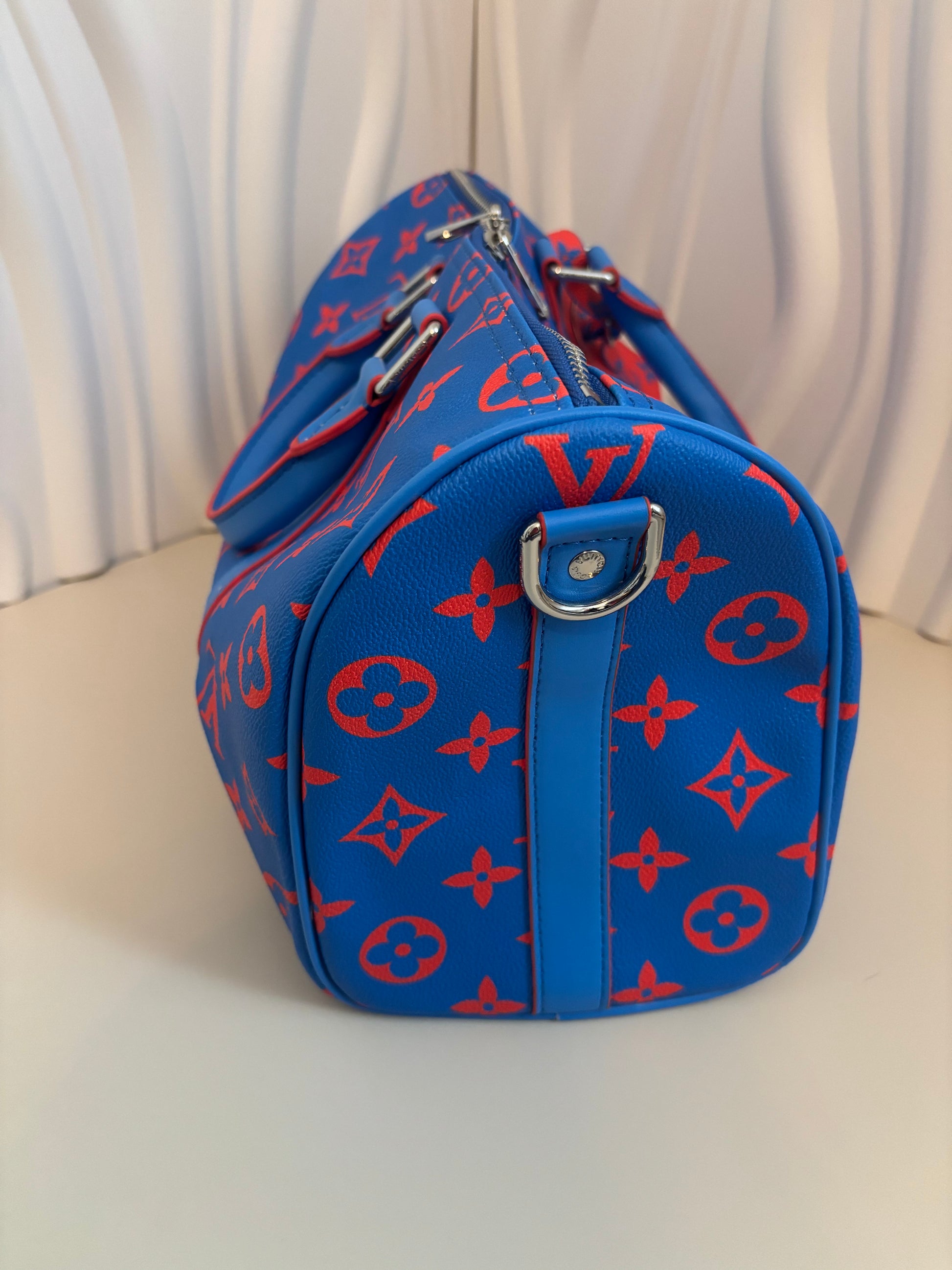 Bright, bold, and full of energy โ the Inspired Blue & Orange Monogram Weekender brings a modern edge to classic travel style. Its vivid color pairing and sleek structure make it the perfect choice for those who love to stand out while staying organized. Designed for weekend getaways, quick trips, or everyday chic on the go, this bag combines luxury-inspired flair with practical function.