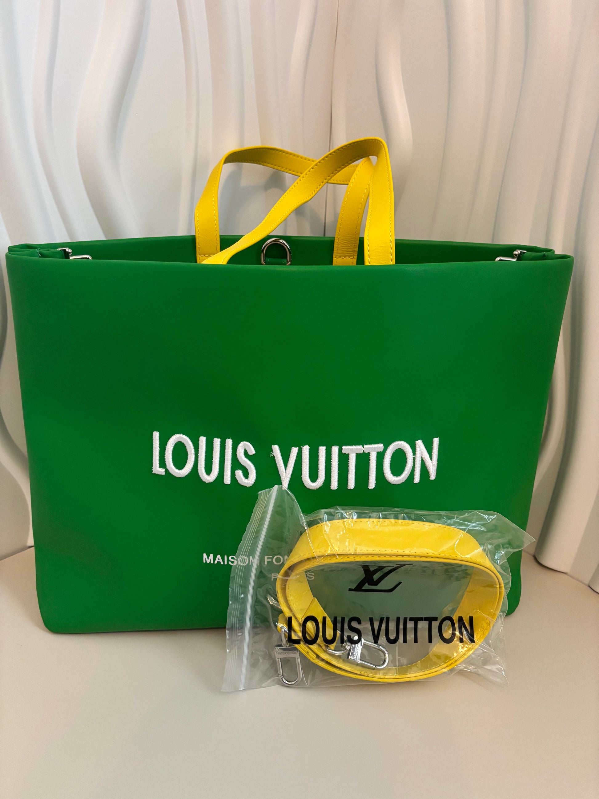 Bold, modern, and full of personalityโthis structured shopper tote in vibrant green with sunny yellow handles is the perfect statement piece. Designed to turn heads while keeping you organized, it blends playful color with functional sophistication. Whether for travel, errands, or a polished everyday look, this tote balances practicality with undeniable style.