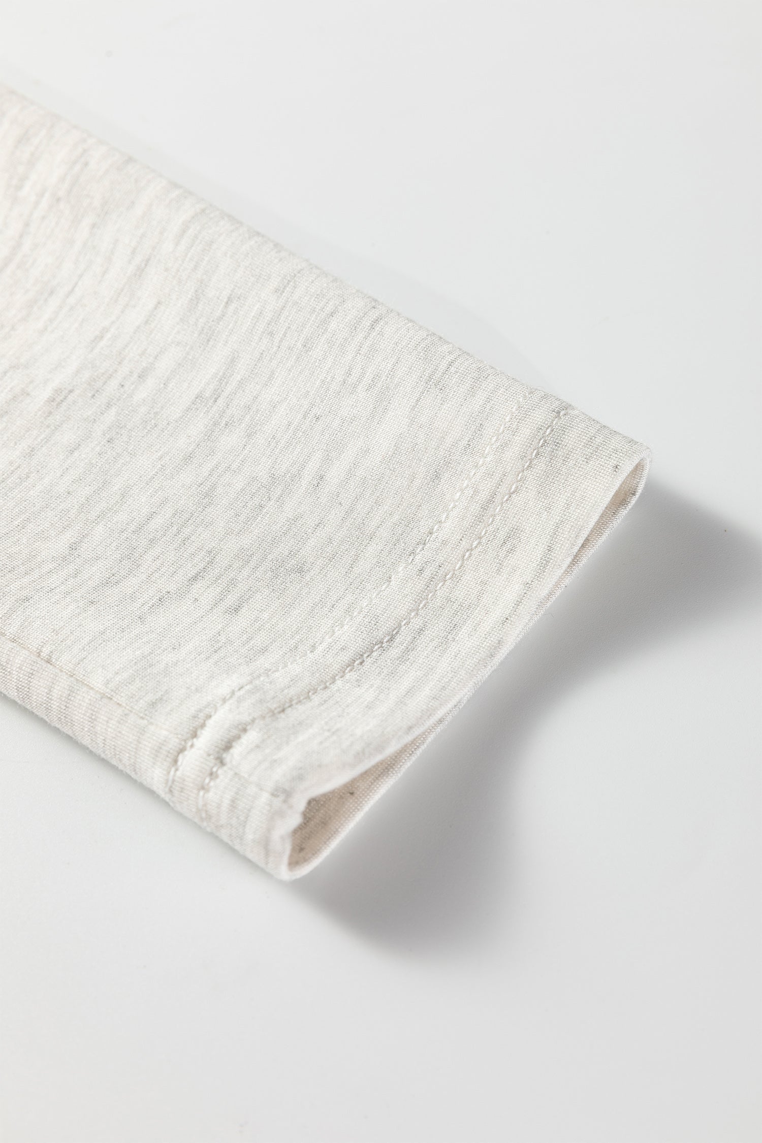 Light Grey Long Sleeve High Neck Slim Top Smocked Waist Central Seam Pants Set